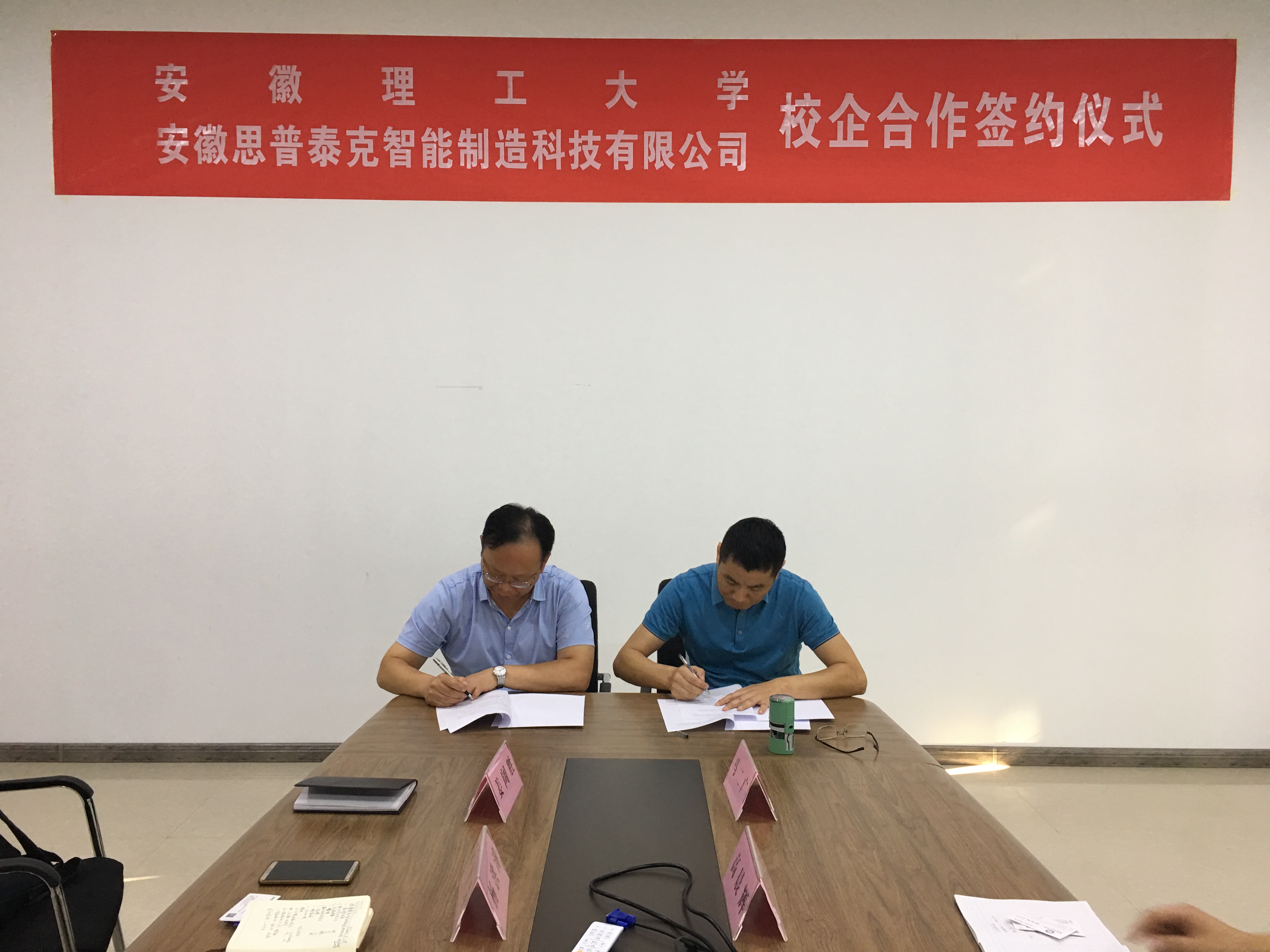 校企產學研簽約合影 2019年9月18日,在這個特殊的日子里,安徽思普泰克智能制造科技有限公司與安徽理工大學簽署產學研戰略合作協議。安徽理工大學機械工程學院副院長楊洪濤教授